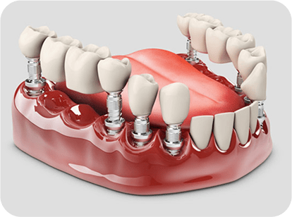 Custom-made prosthetic that replaces an entire arch of missing teeth (upper or lower). Crafted for comfort, function, and a lifelike appearance.