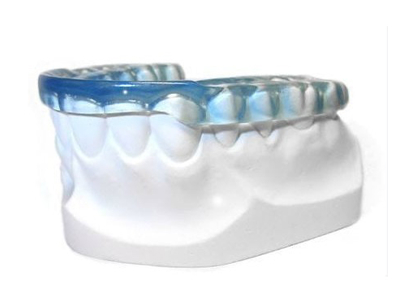 Mandibular advancement devices that reposition the jaw/tongue to keep the airway open and reduce snoring and mild sleep apnea symptoms.